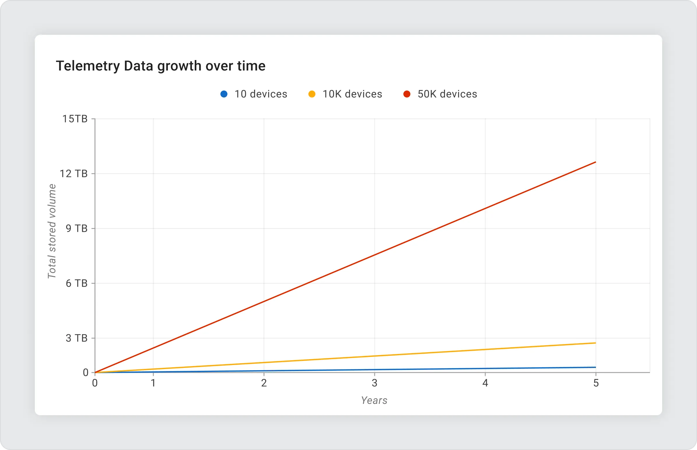 While a “store-everything” approach is manageable for a small pilot, storage requirements scale linearly with your fleet size. In a production environment, this volume quickly transforms from a technical metric into a financial liability.