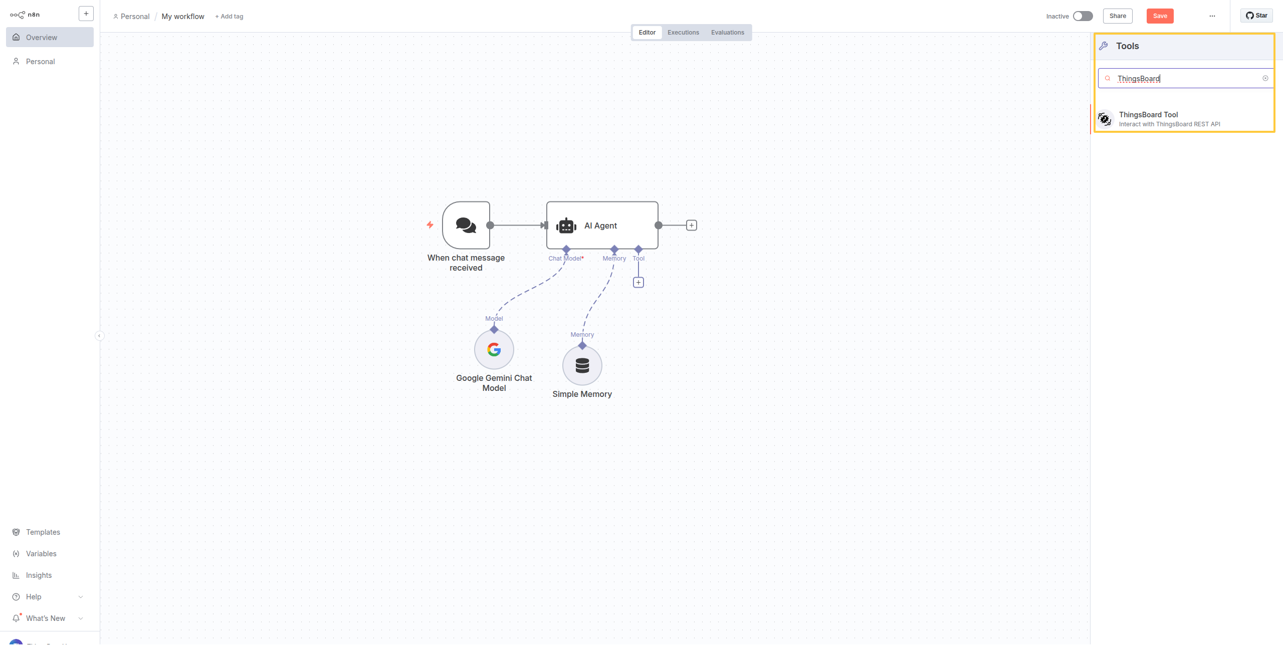 To use the ThingsBoard node as an AI Agent Tool, restart n8n with the environment variable: