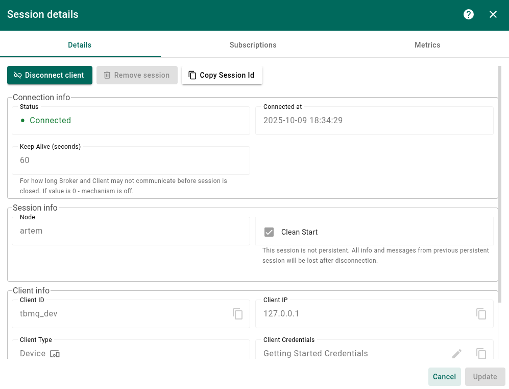 Upon successful establishment of the connection, we can proceed to examine the session information within the UI.