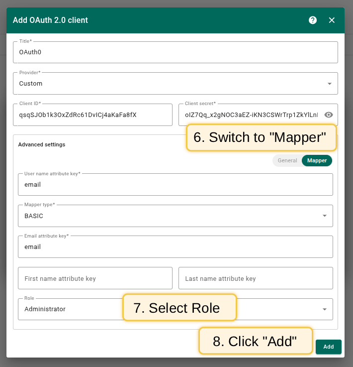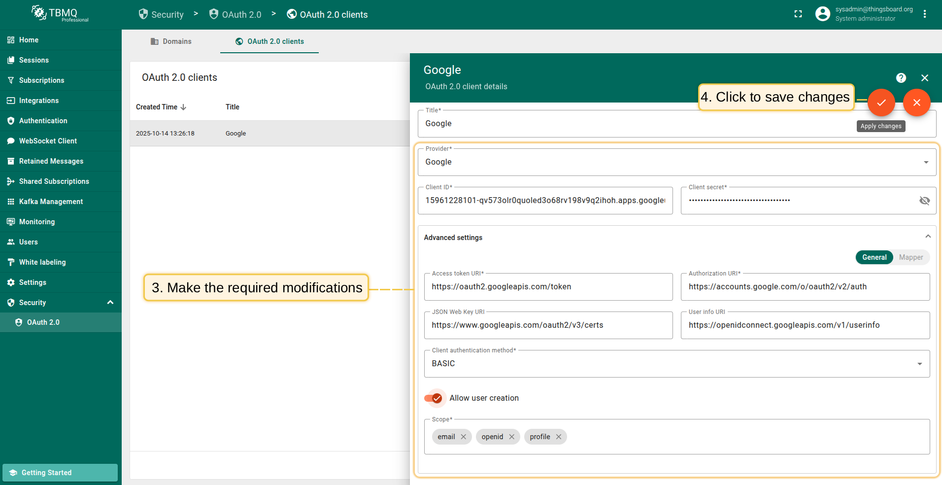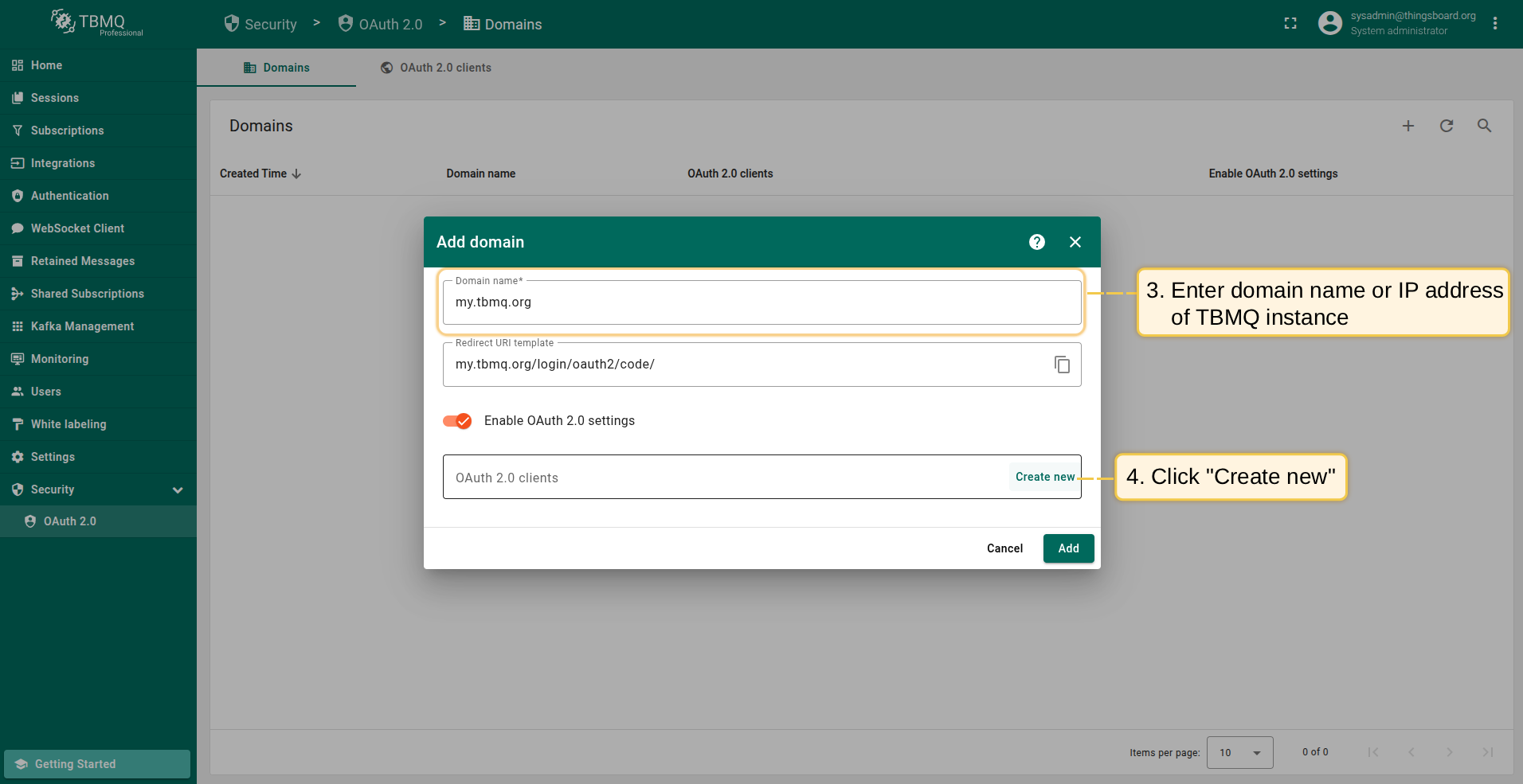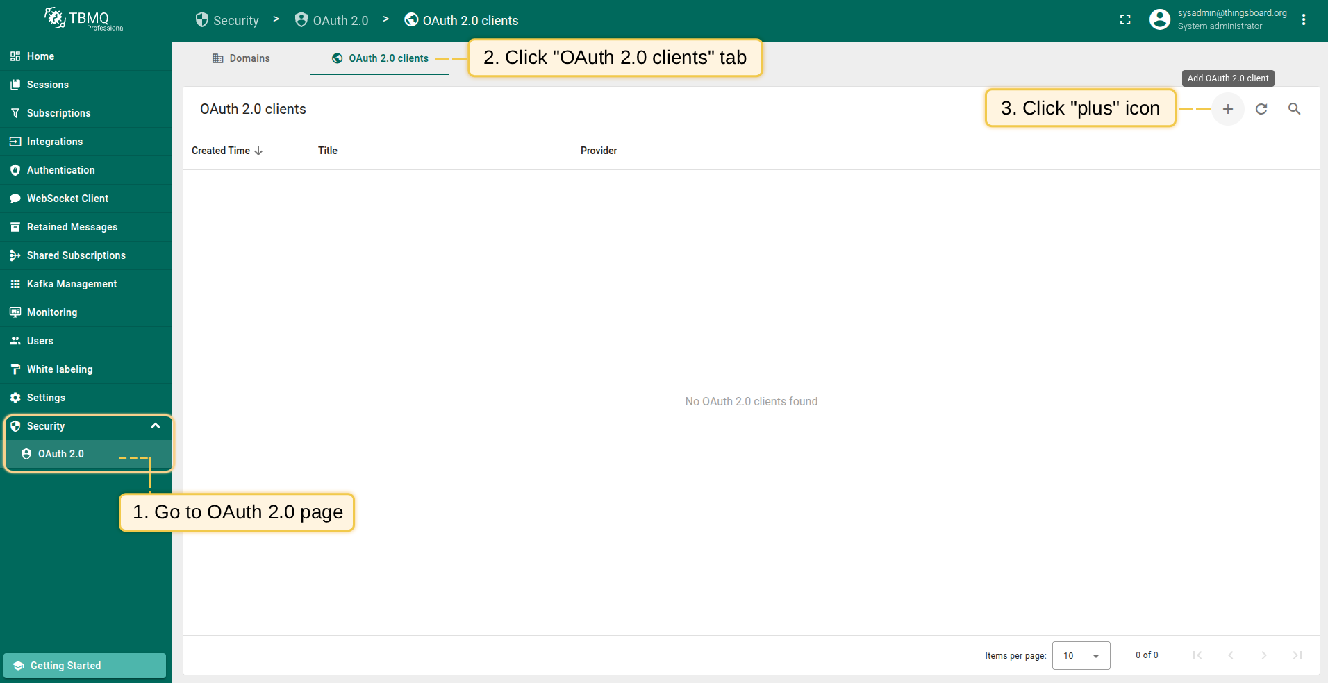 Follow these steps to add a new OAuth 2.0 client to TBMQ:
