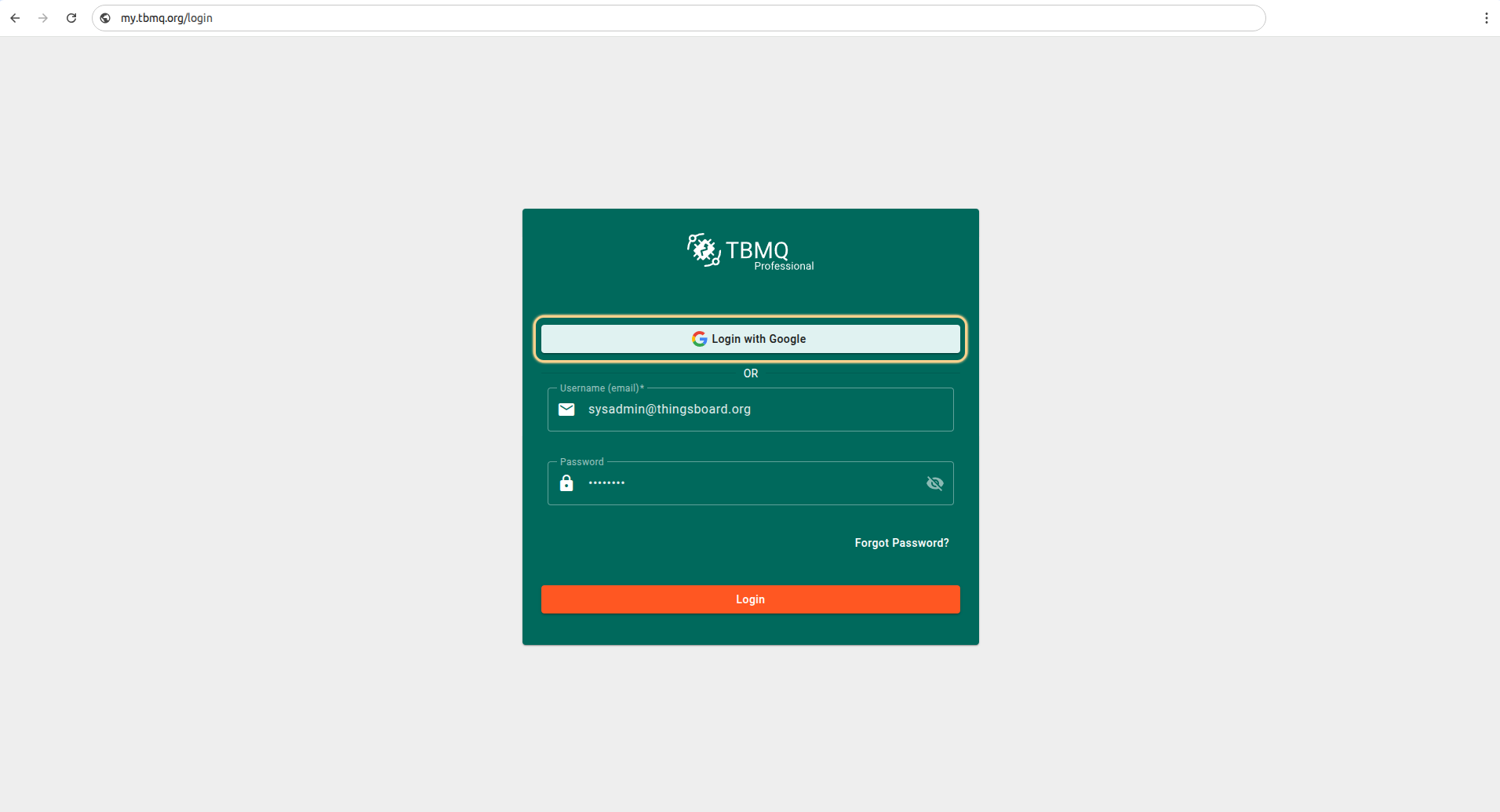 Now, go to the TBMQ login screen. You will see a new “Login with Google” option. Select one of your Google accounts, and you will be logged into TBMQ using your Google email.