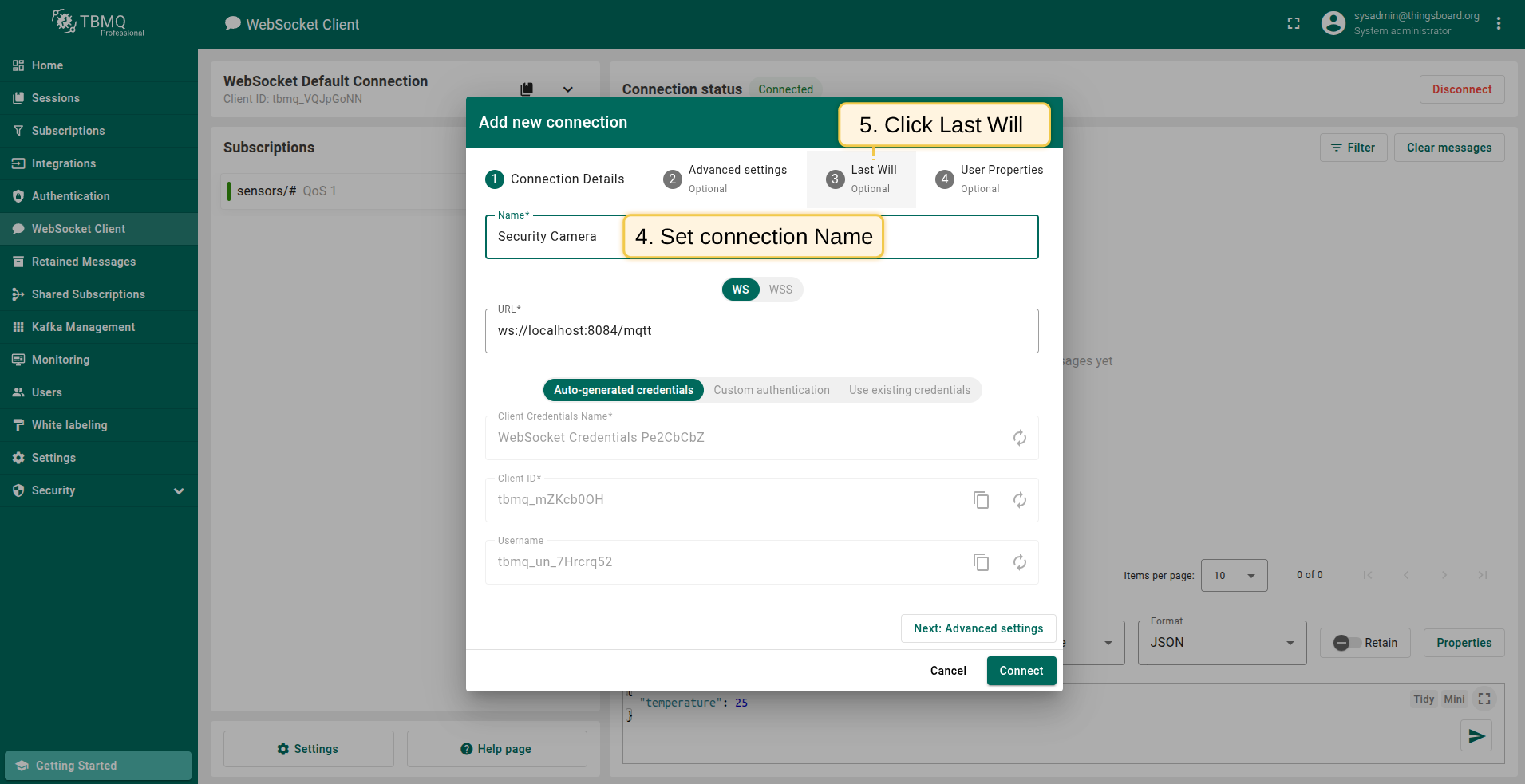 Last Will guide with TBMQ WebSocket Client