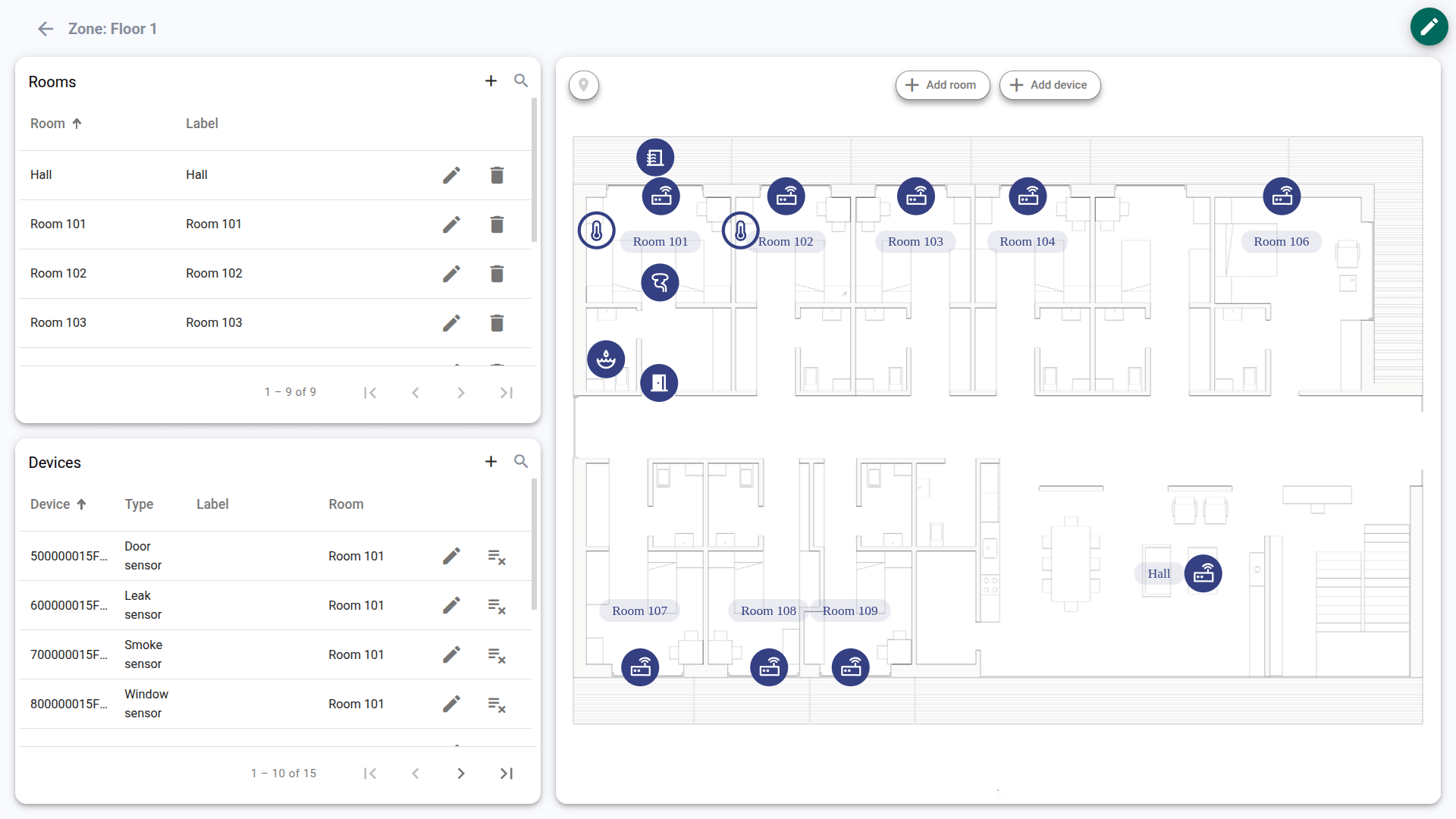 • Zones state – Facility hierarchy management (floors/zones) and floor plan uploads.