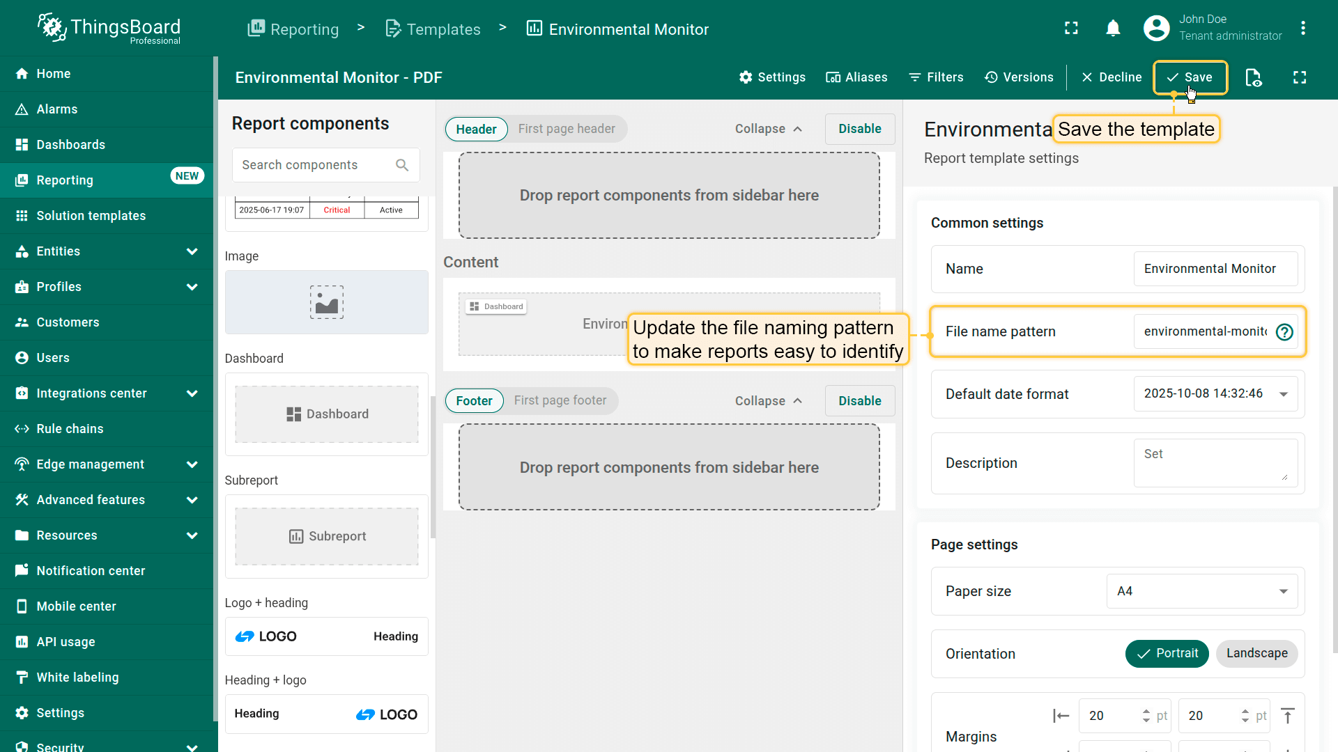 - Update the file name pattern so that exported reports are easy to identify.