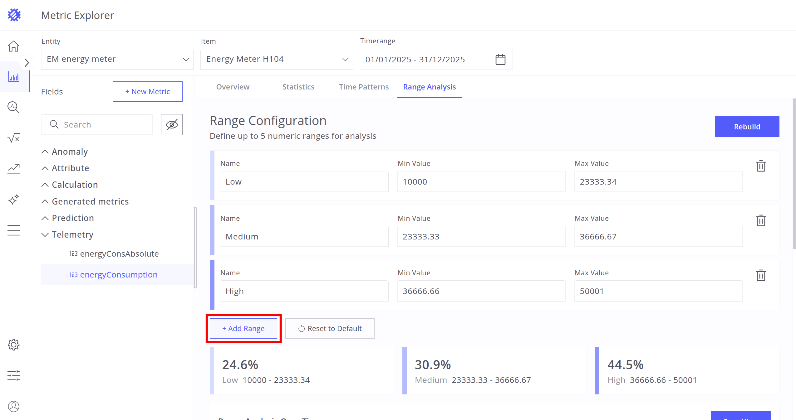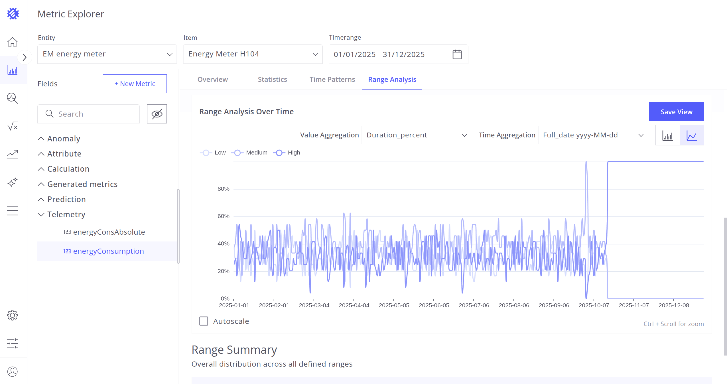 - Range Analysis - Distribution of telemetry values over time and range intervals.