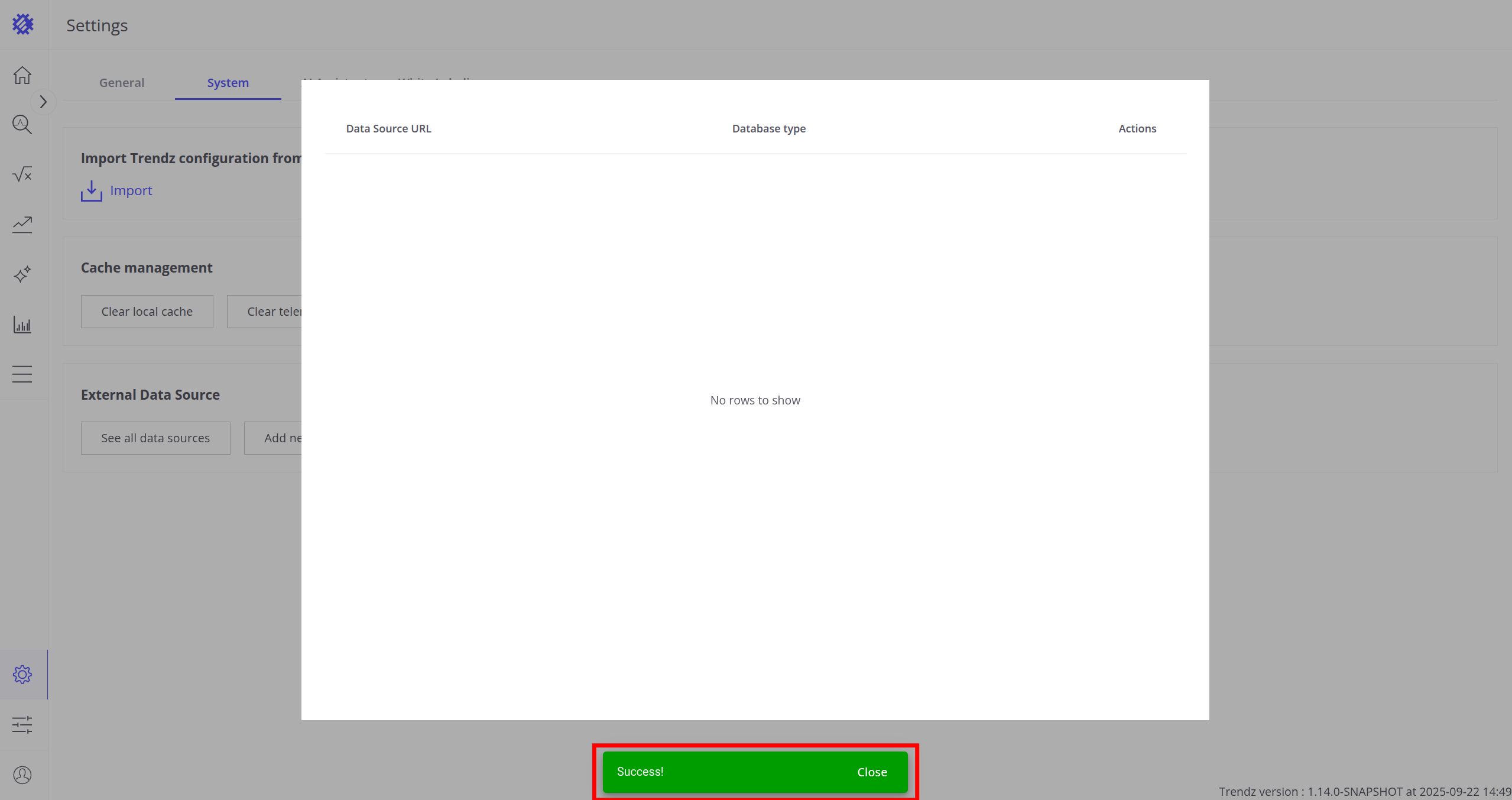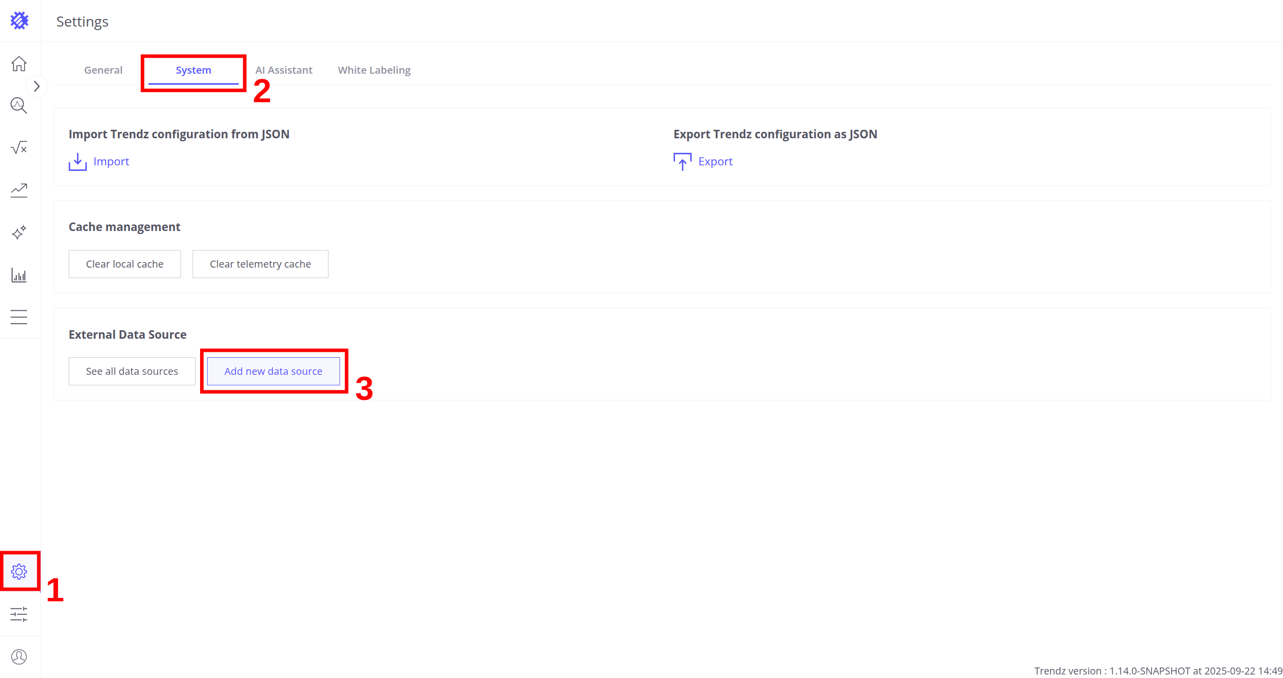 Important to highlight: Trendz can use data from an external datasource only together with related data from ThingsBoard. It could be just item names or other data.