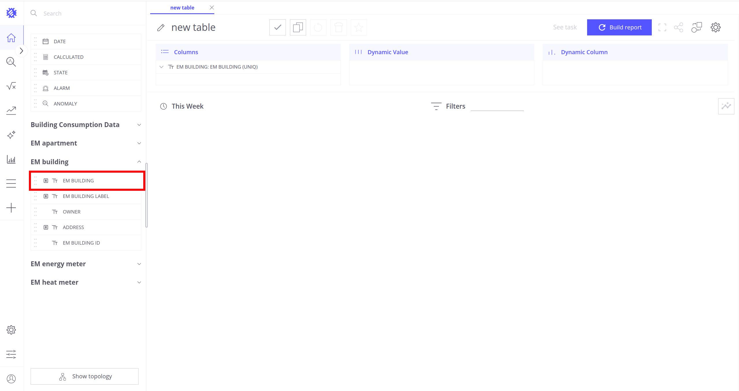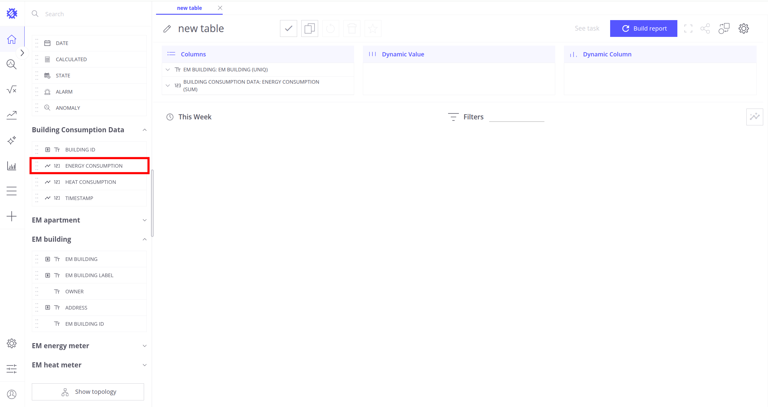 - Drag and drop any field from the external business entity into the column section (energy_consumption).